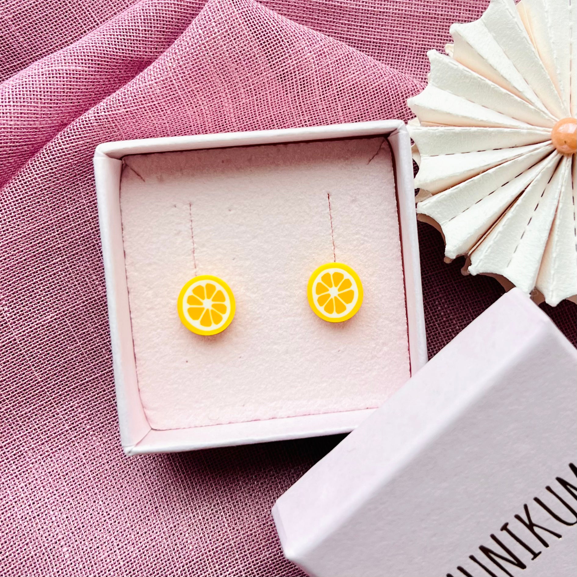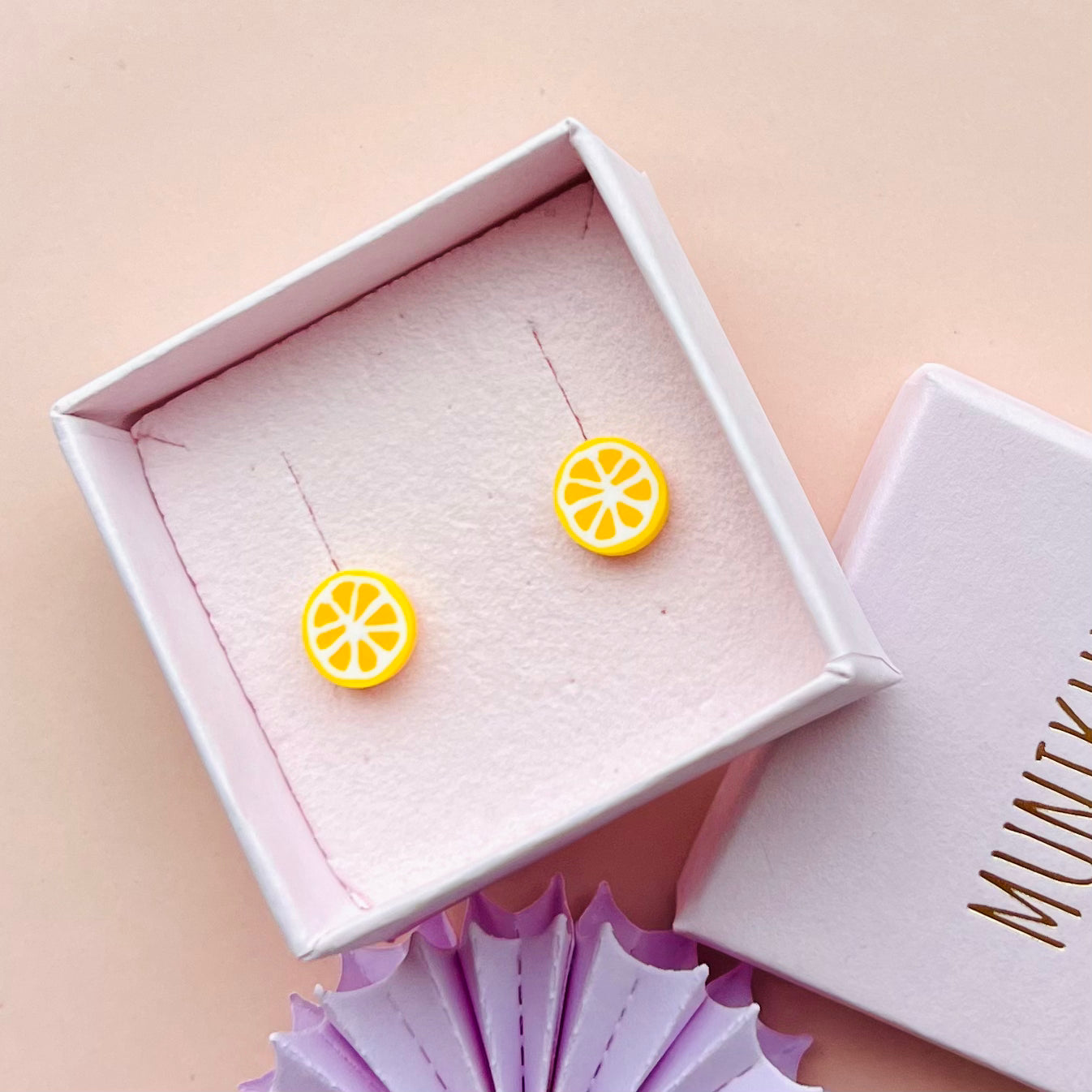 Fine små håndmodellerede citroner - perfekte til dig, der ikke ønsker hænge-øreringe. Disse sidder trygt og godt på øret <3
