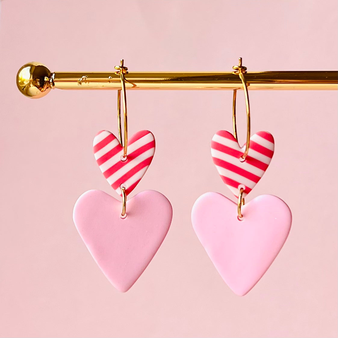 Øreringene måler ca. 5 cm fra bund til top. Hoopsene måler 20 mm i diameter.