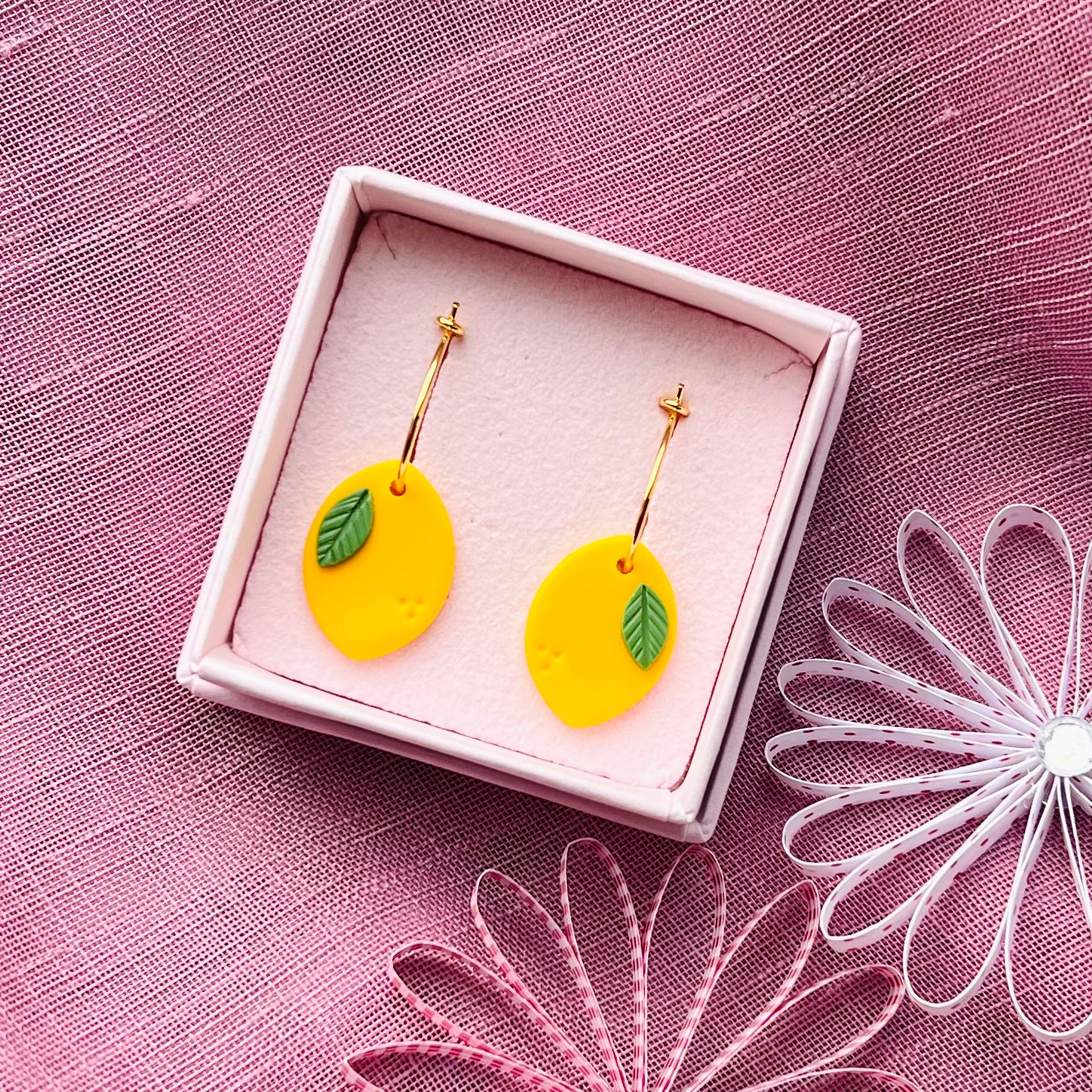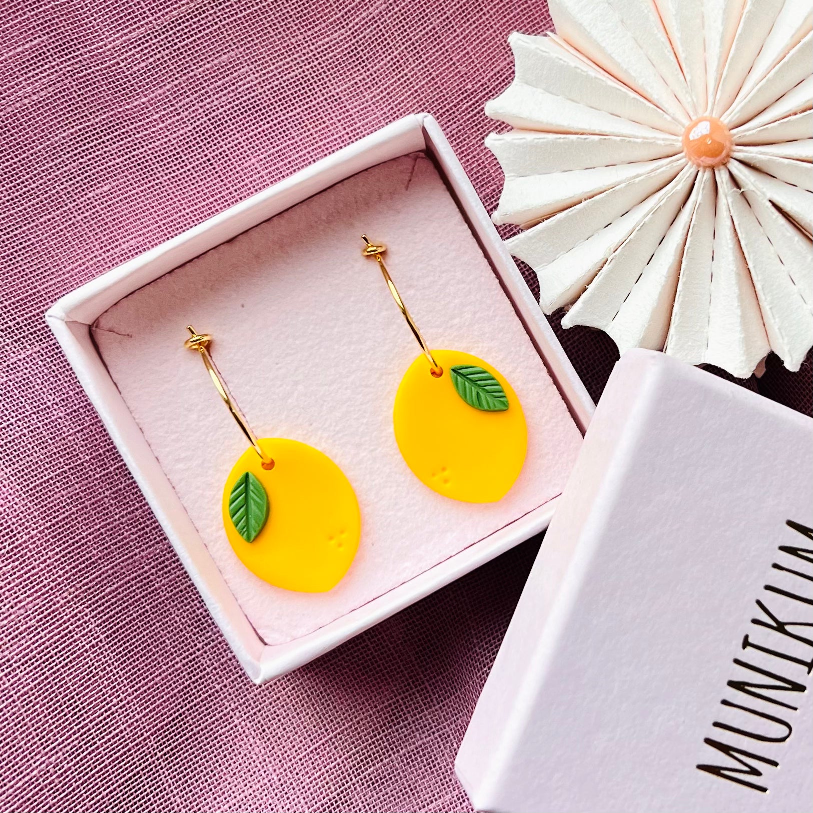 Fine håndlavede citroner i cernit-ler på 15 mm hoops <3