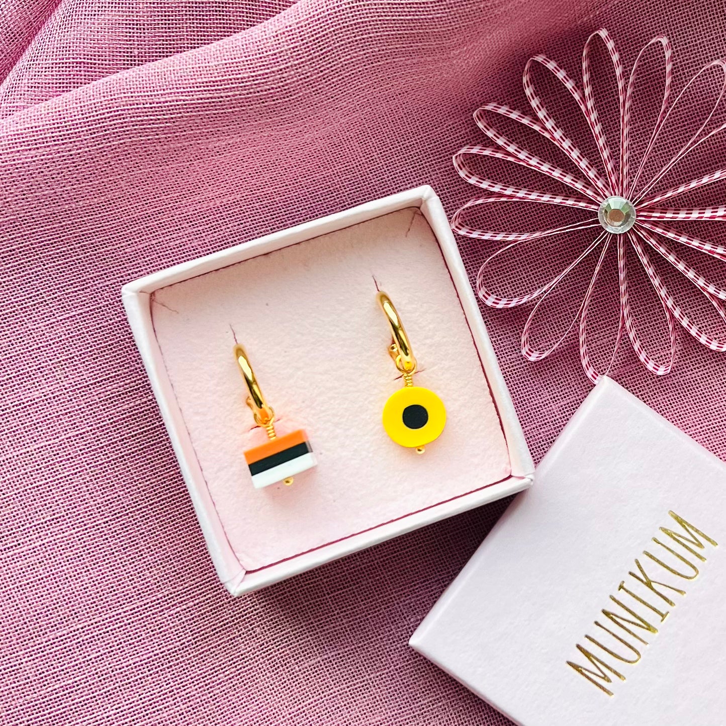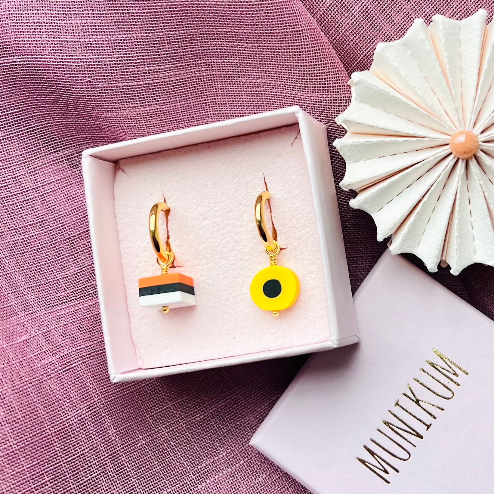 Elegante 12 mm chunky hoops med håndlavede konfektstykker i cernit-ler.