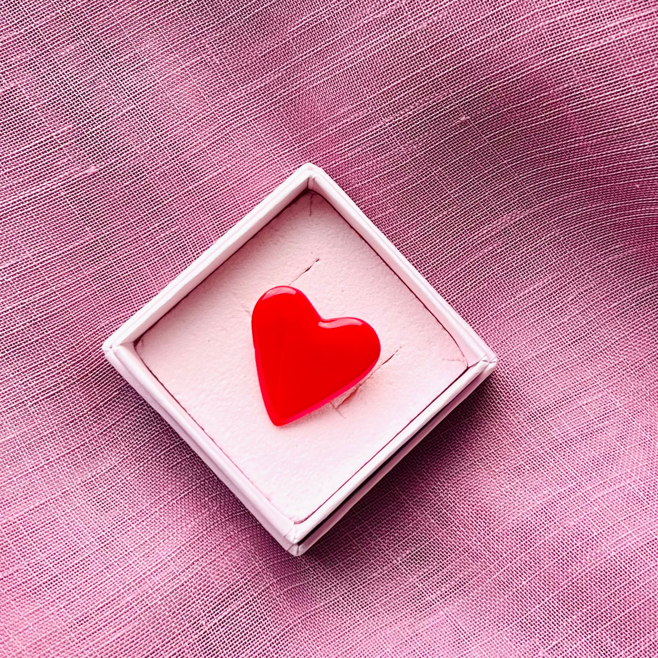 Lavet i cernit-ler og lakeret med resin. Hjertet måler ca. 2,5 x 2,5 cm