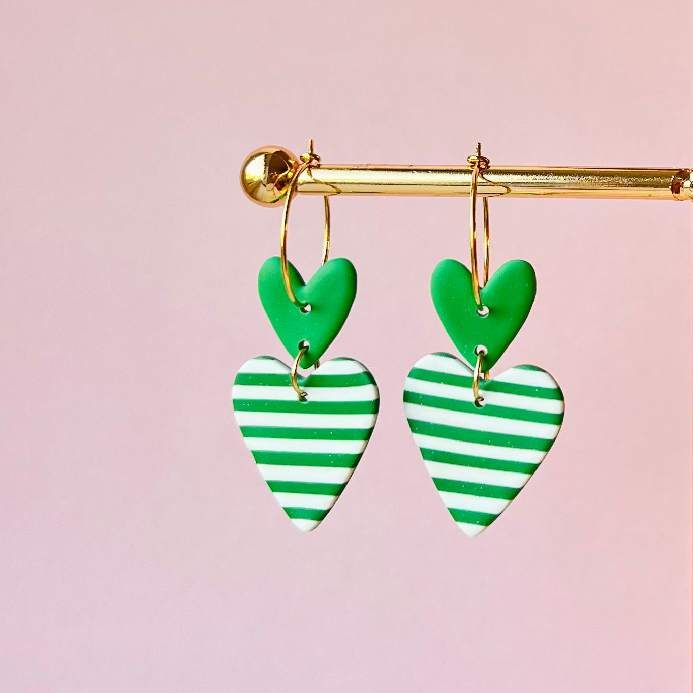 Øreringene måler ca. 5 cm fra bund til top. Hoopsene måler 20 mm i diameter.