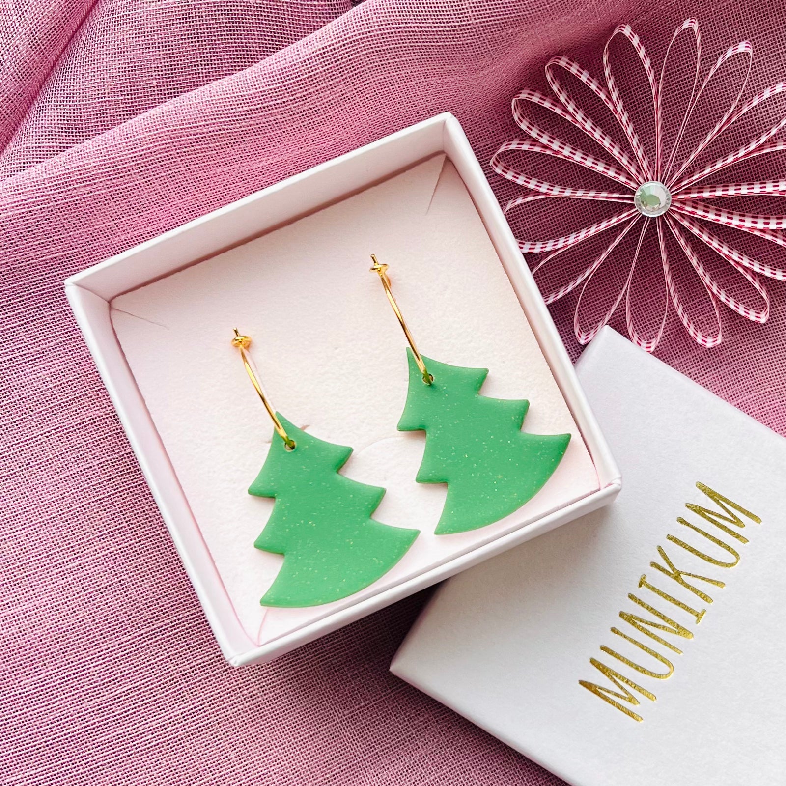 Håndmodelerede Juletræer i cernit-ler på 18 mm hoops <3