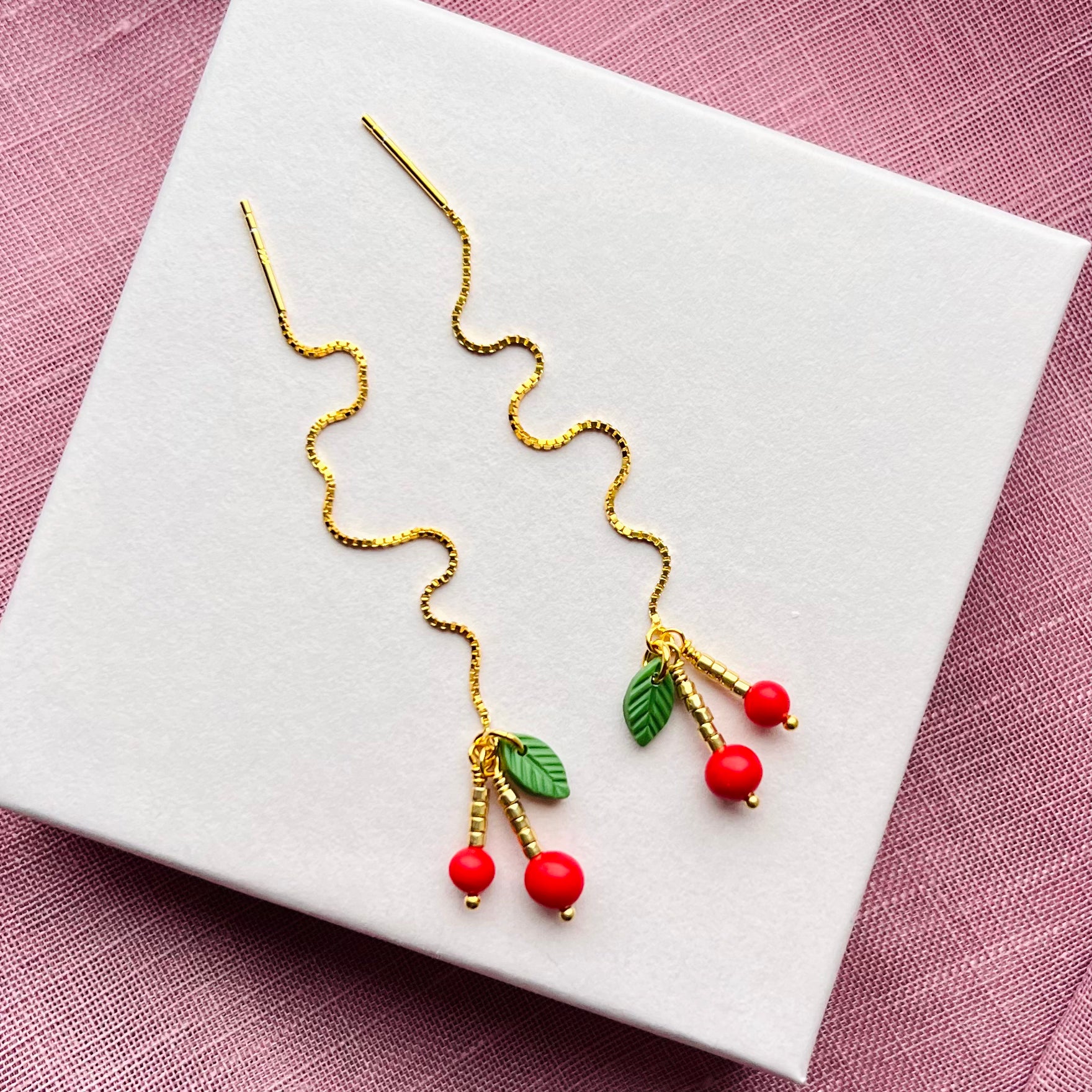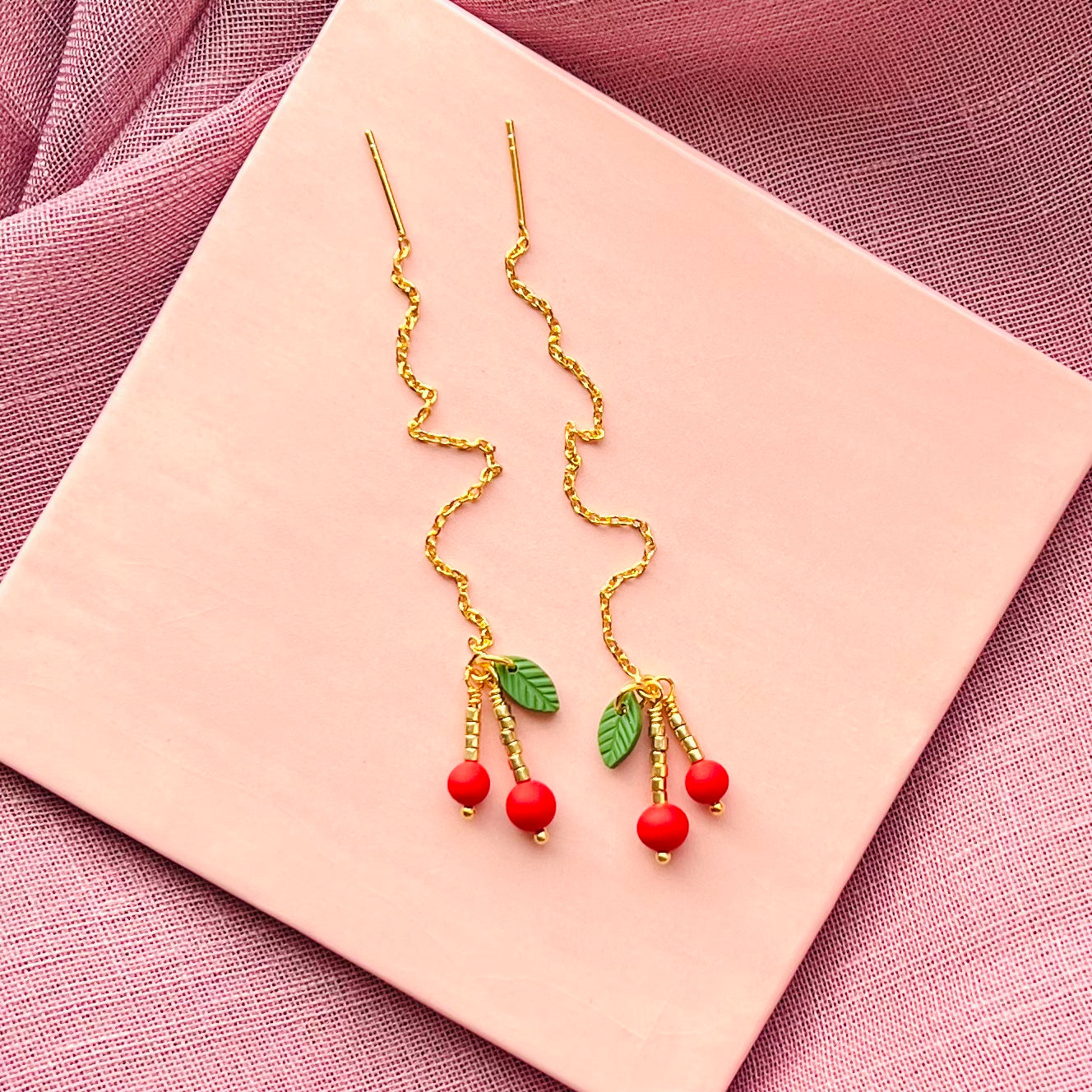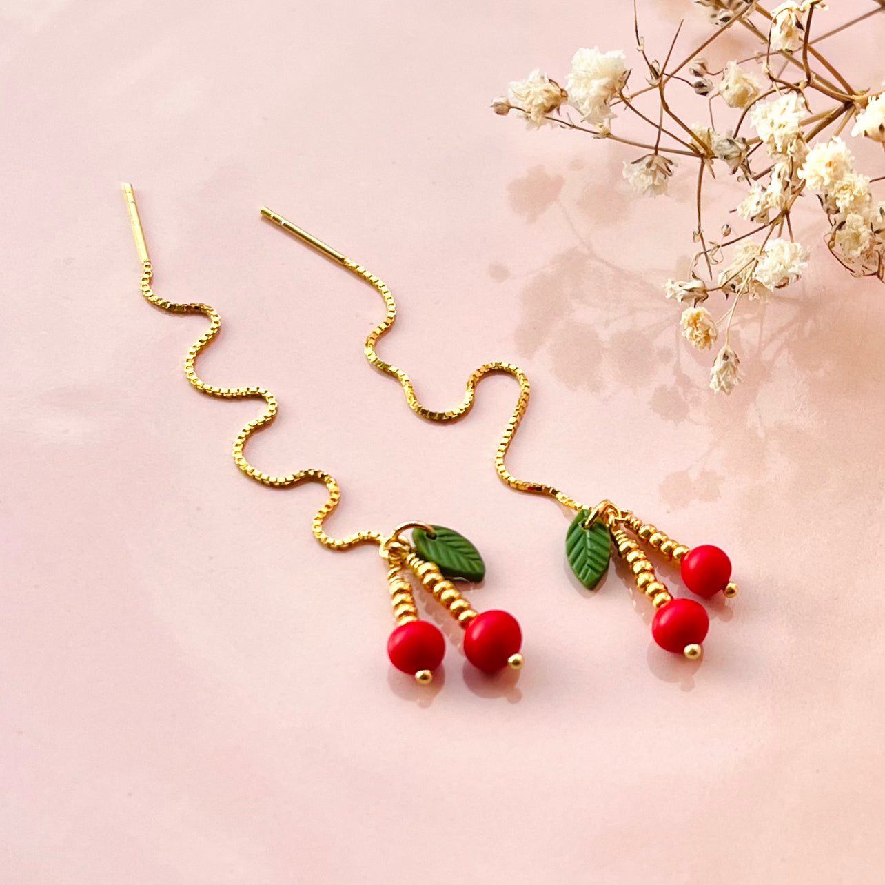 Kirsebær Kædeøreringe - sæt / 2 stk