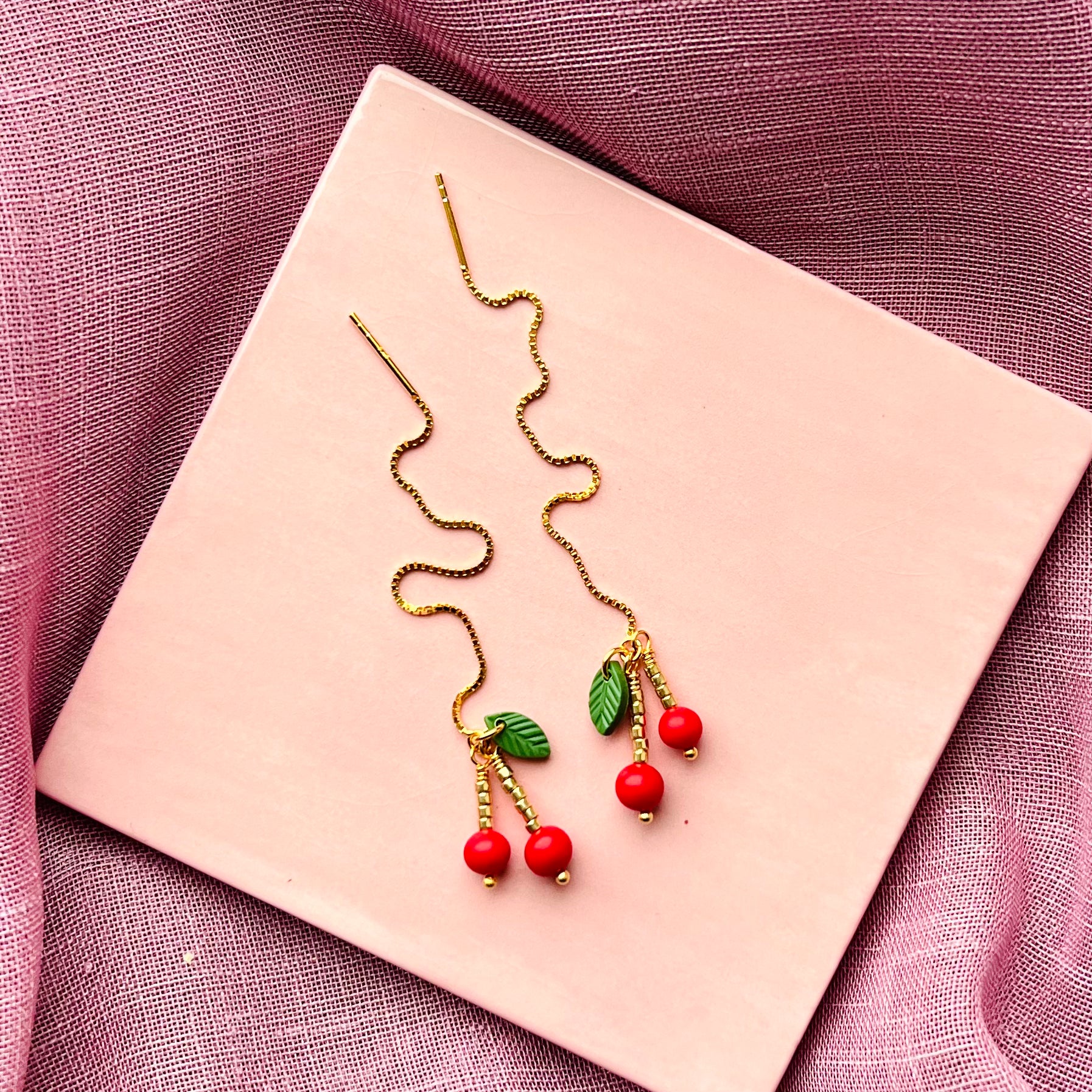 Kirsebær Kædeøreringe - sæt / 2 stk