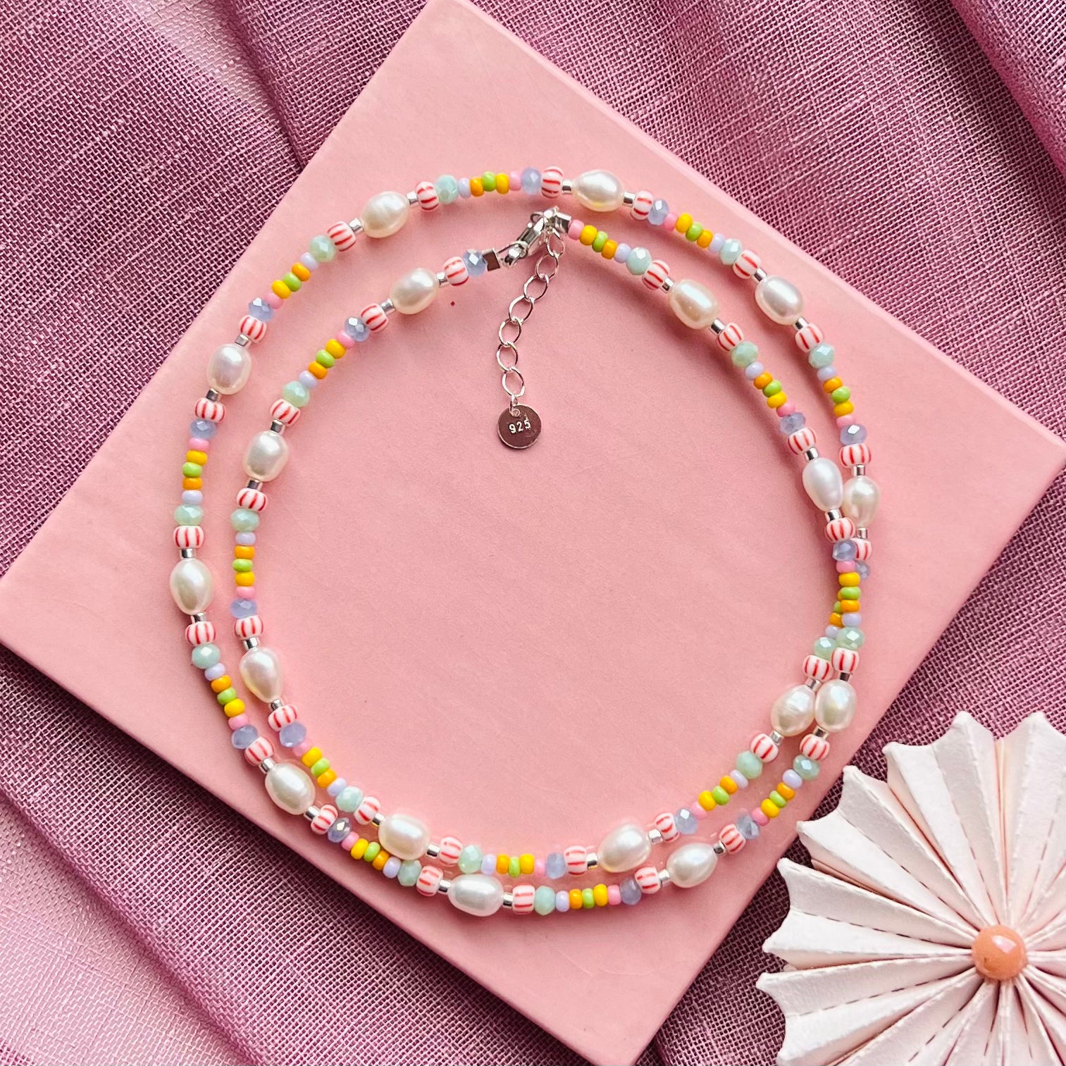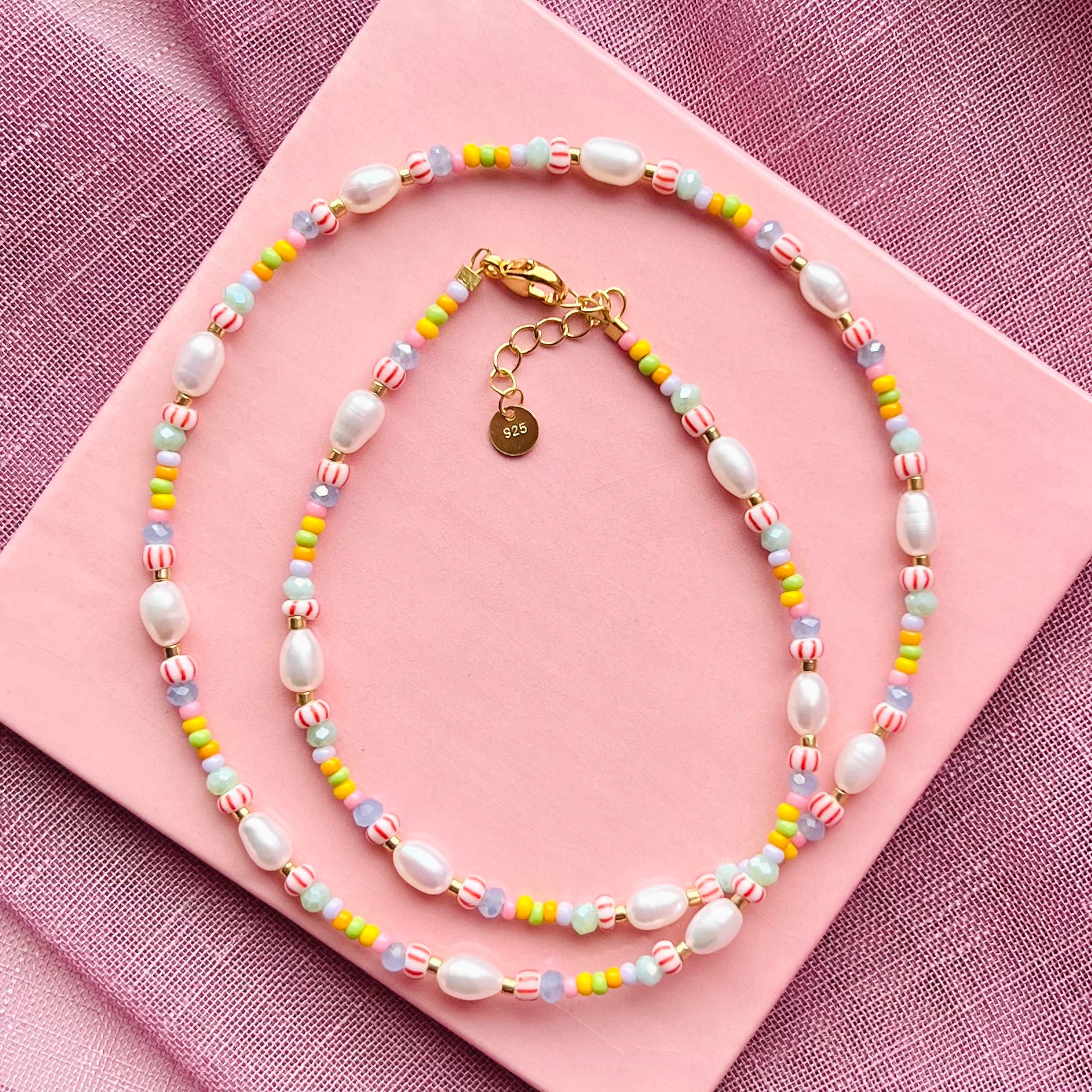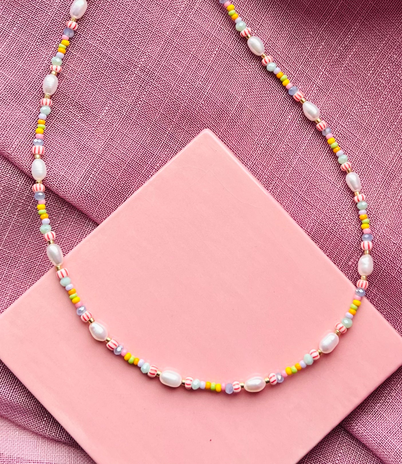 Perlehalskæde i de fineste glade farver og ferskvandsperler⭐️