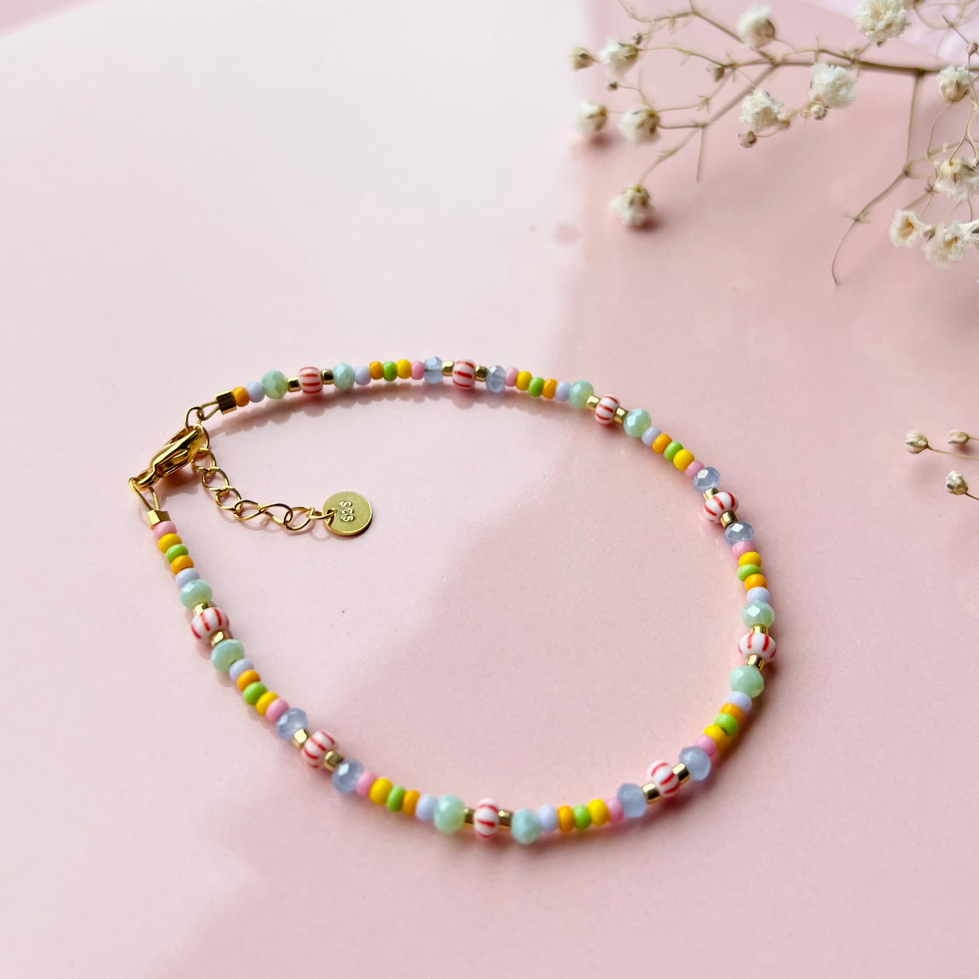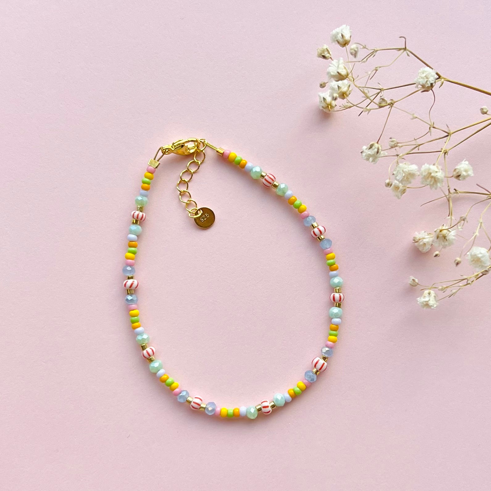 Smukt og farverigt armbånd med glasperler i glade farver <3 Fås i sterlingsølv og 18 karat forgyldt sterlingsølv.
