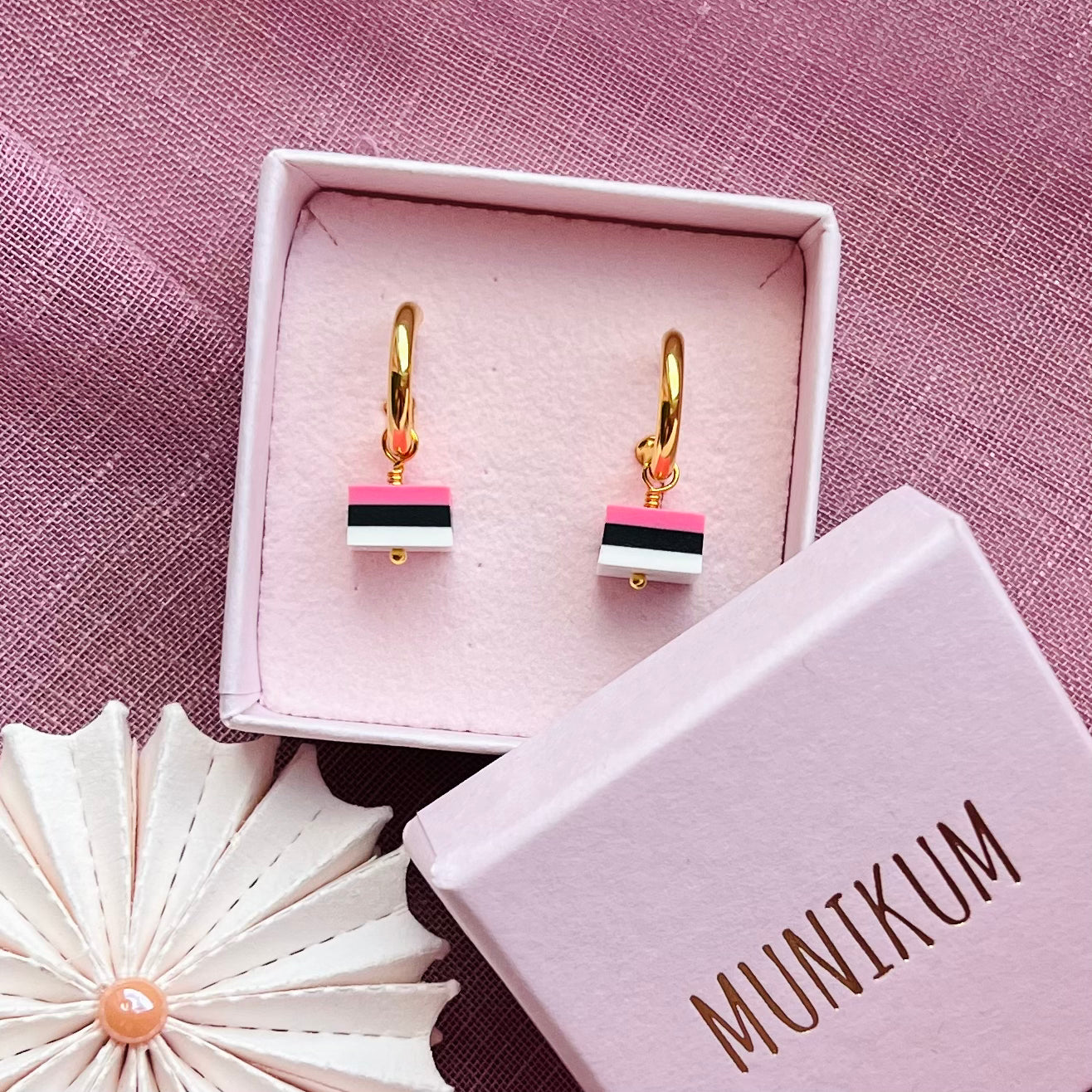 Elegante 12 mm chunky hoops med håndlavet lakridskonfekt i cernit-ler.