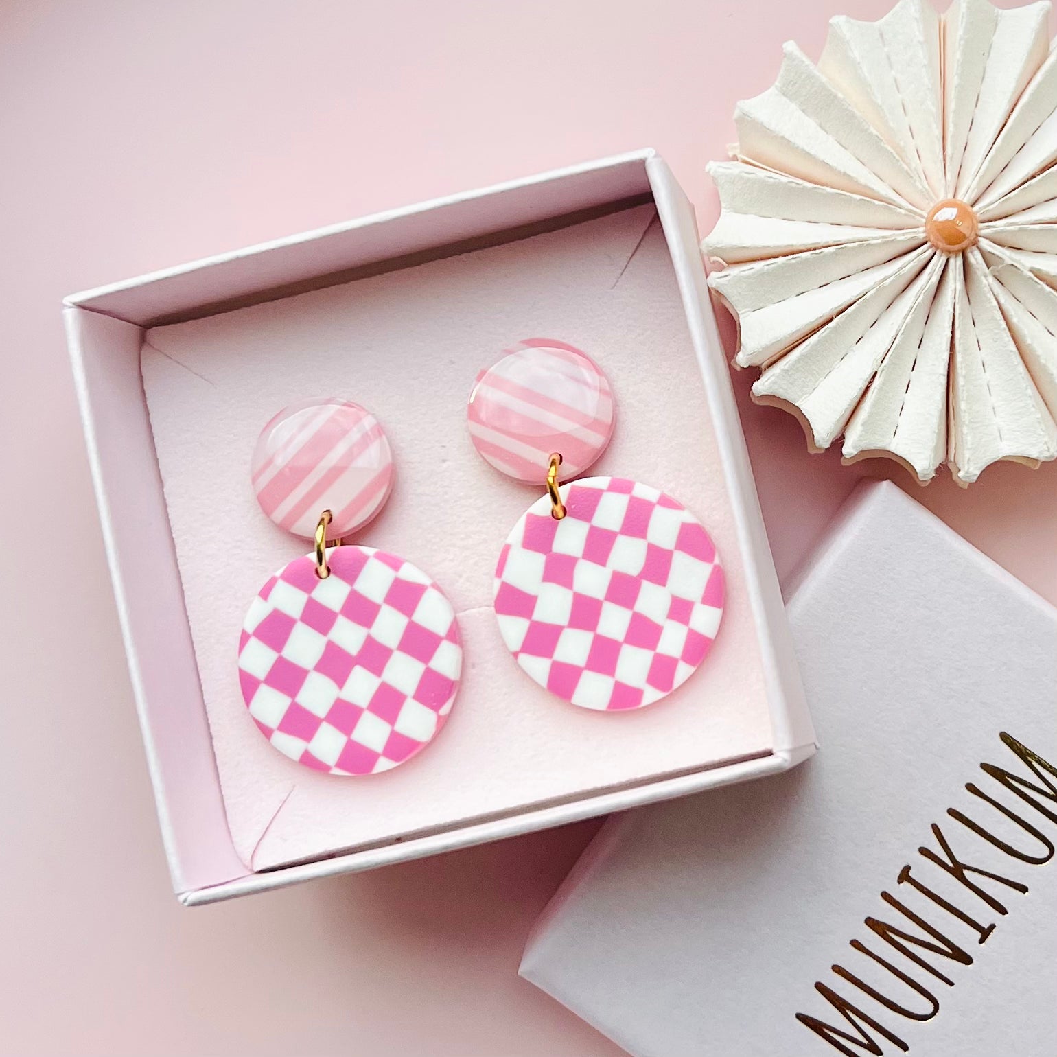 Unika ørestikkere med håndmodellerede skaktern i lyserøde nuancer <3