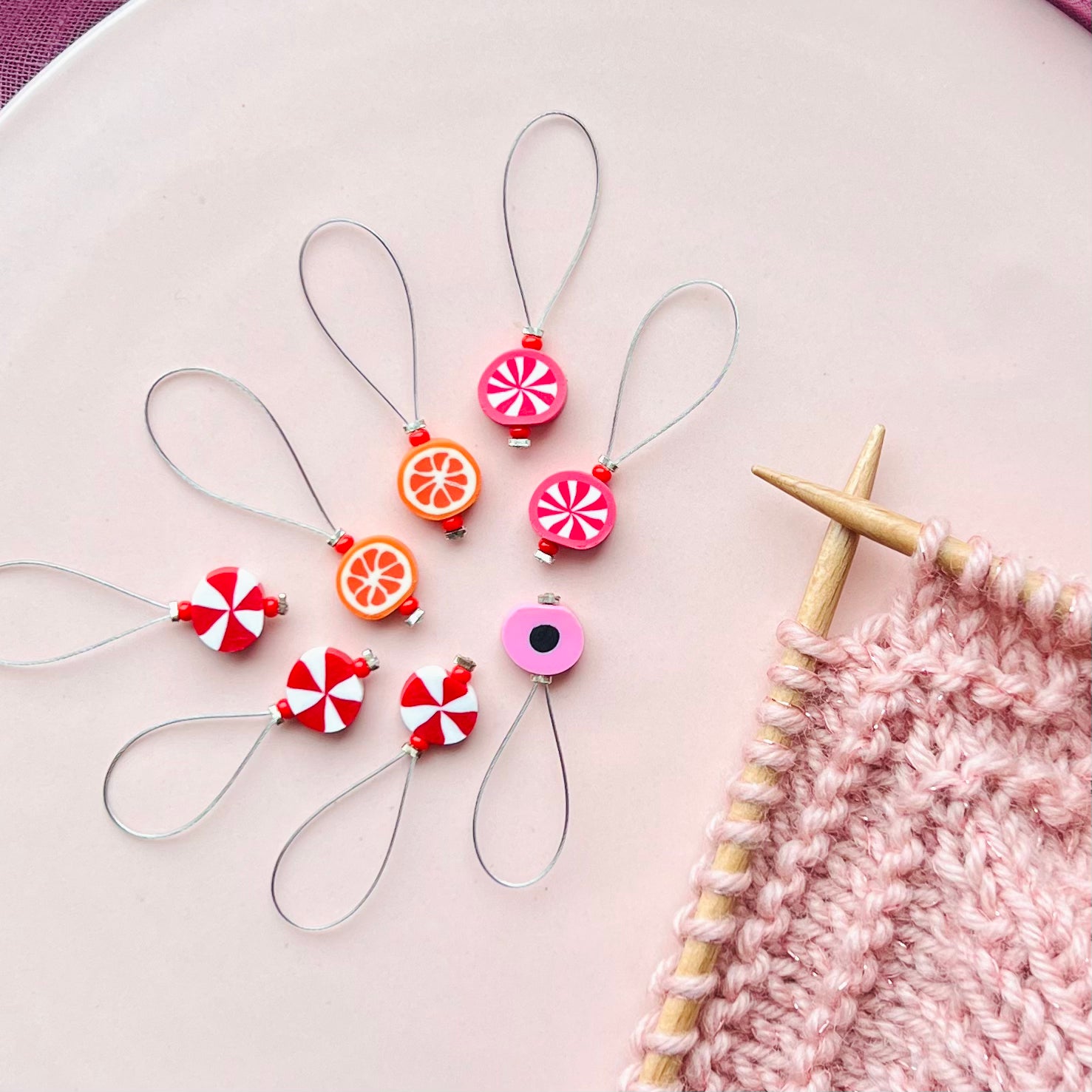 Disse finurlige og skønne maskemarkører passer op til og med pind 12 <3 Wiren er slebet grundigt i bunden, så markørerne ikke kradser eller sidder fast i garnet (gælder alle slags garntyper).
