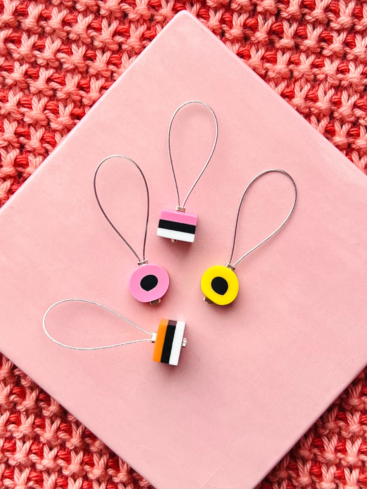 Sæt af 4 maskemarkører - Lakridskonfekt