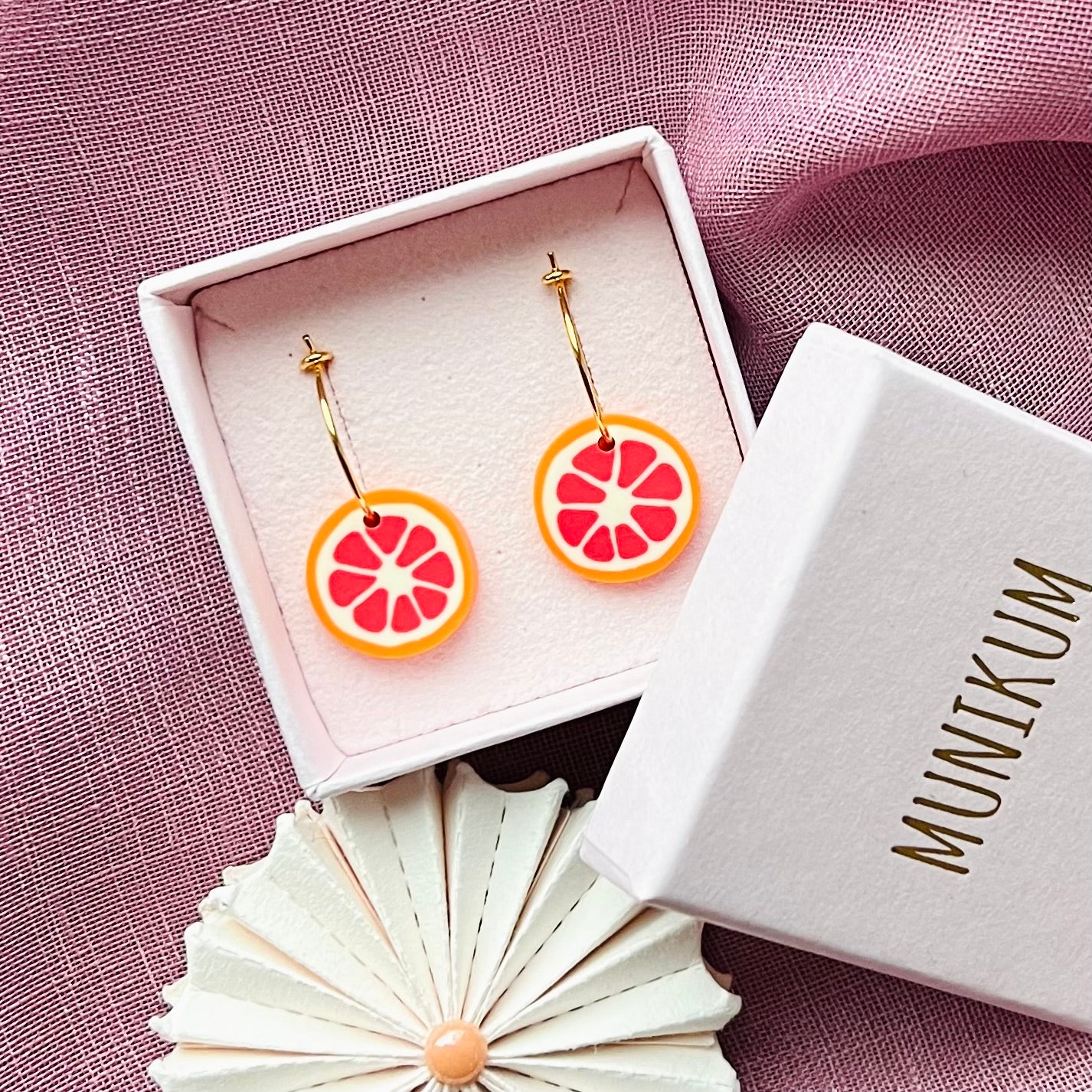 Fine håndlavede grapefrugter i cernit-ler på 15 mm hoops <3