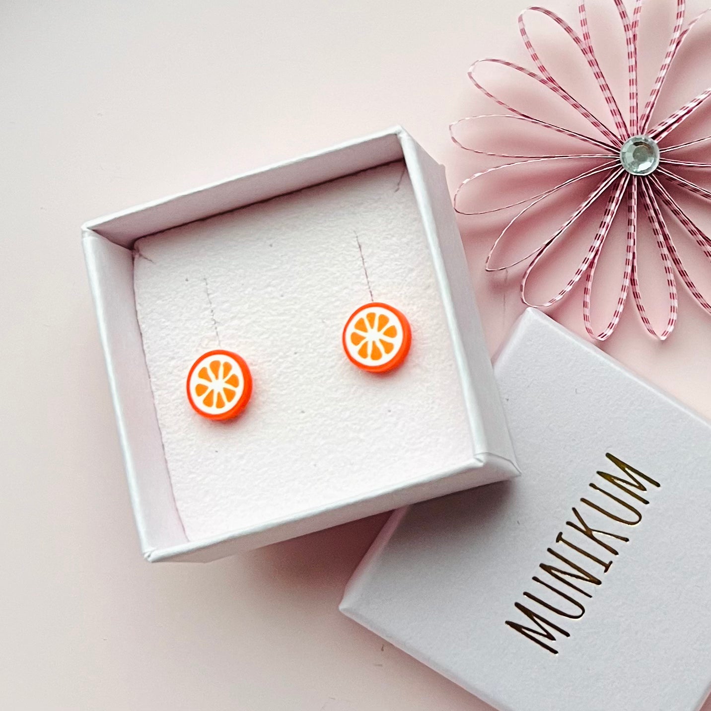 Fine små håndmodellerede grapefrugt-ørestikkere, som sidder elegant og trygt på øret <3