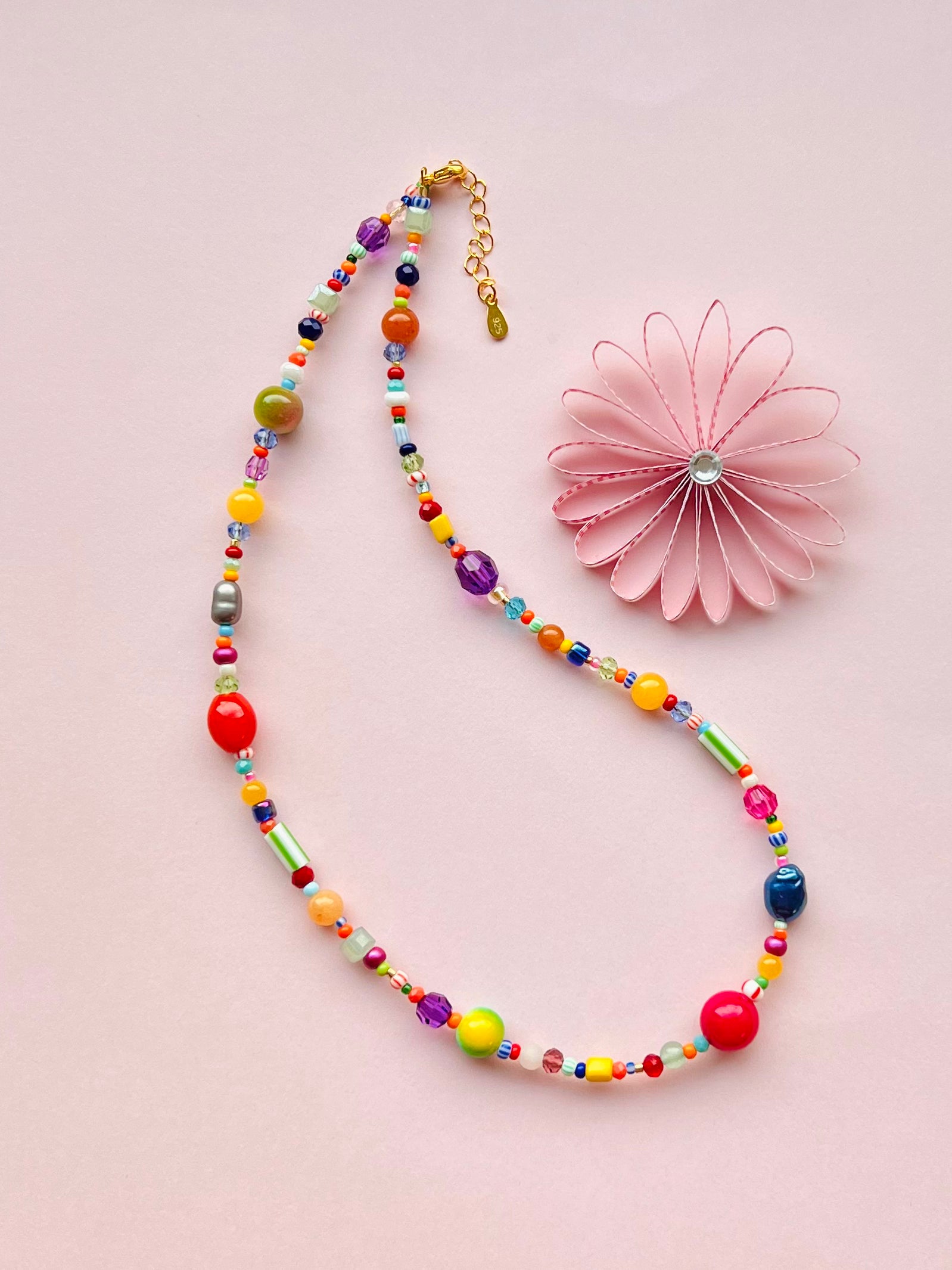 One of a kind perlehalskæde med blandede sten og perler i skønne farver <3