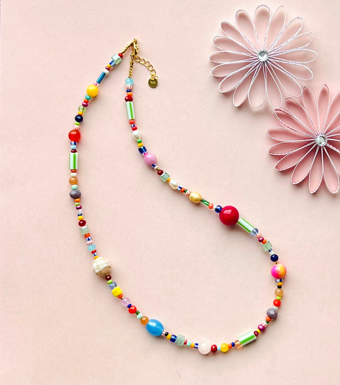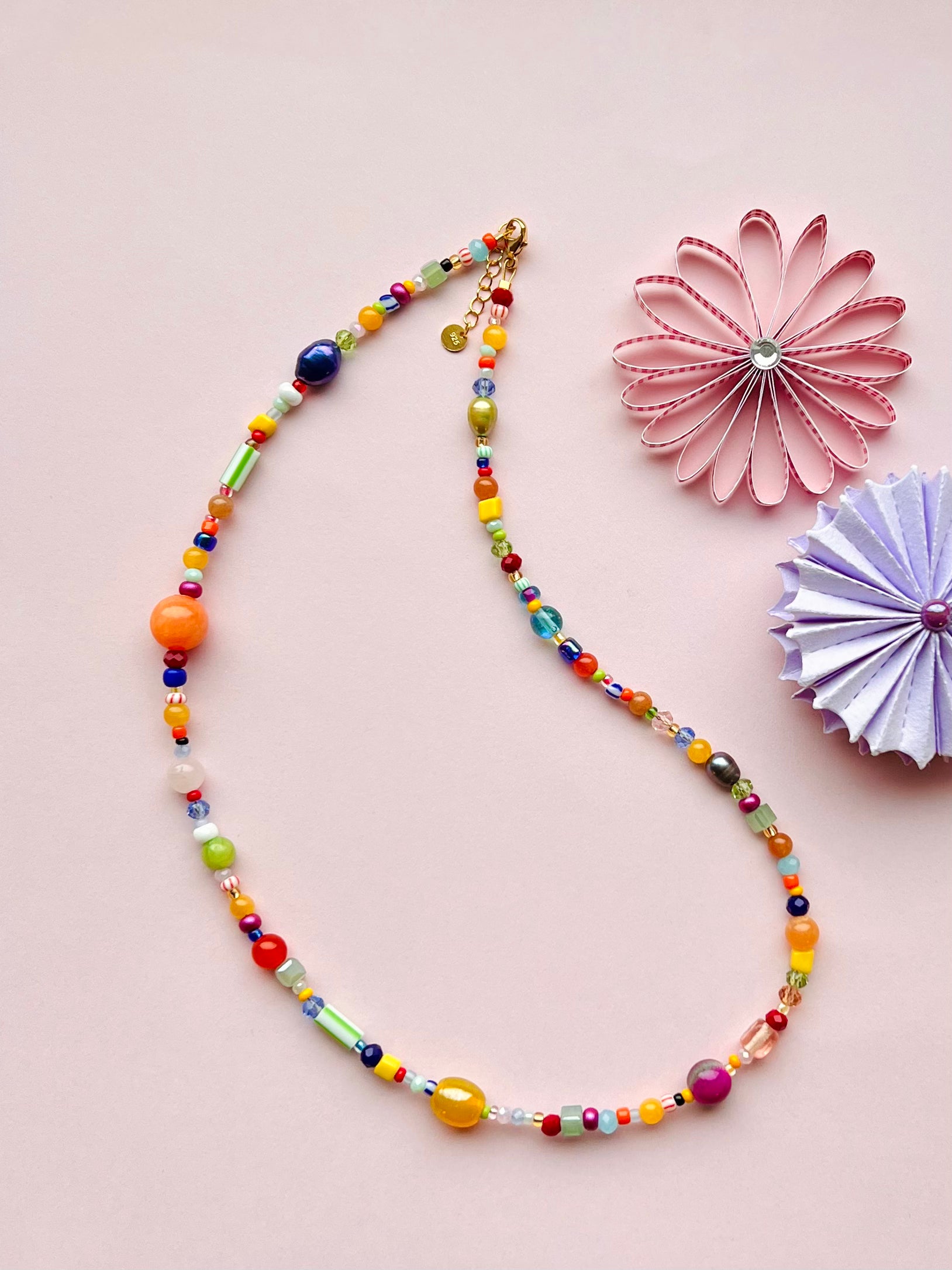 One of a kind perlehalskæde med blandede sten og perler i skønne farver <3