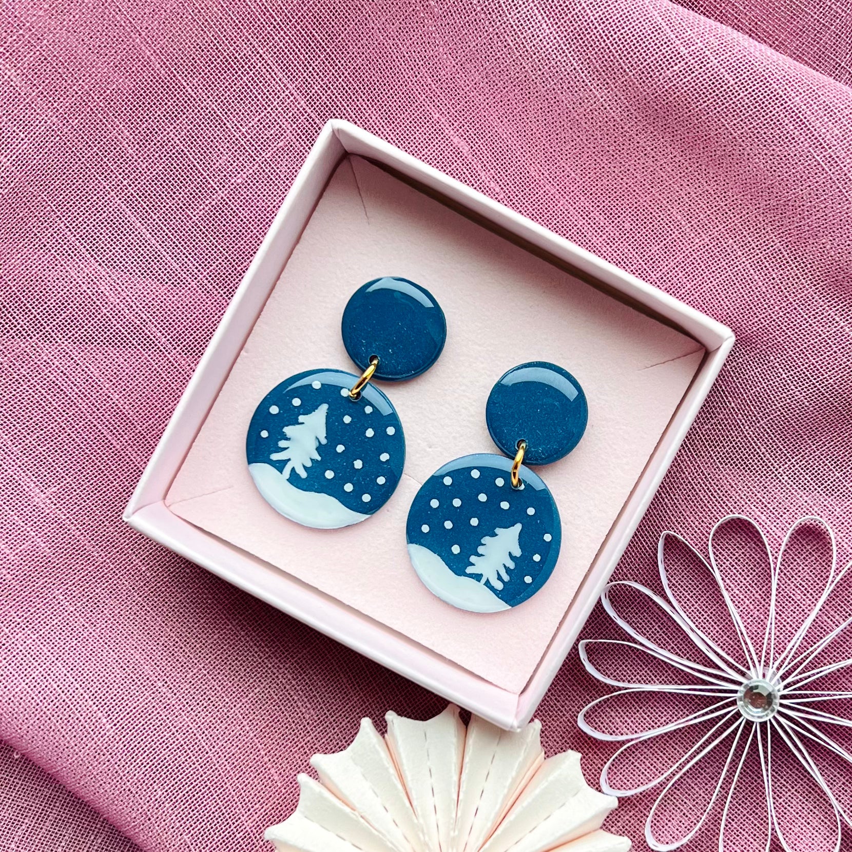 Unika-ørestikkere med håndmalede detaljer på en mørkeblå baggrund med glimmer <3
