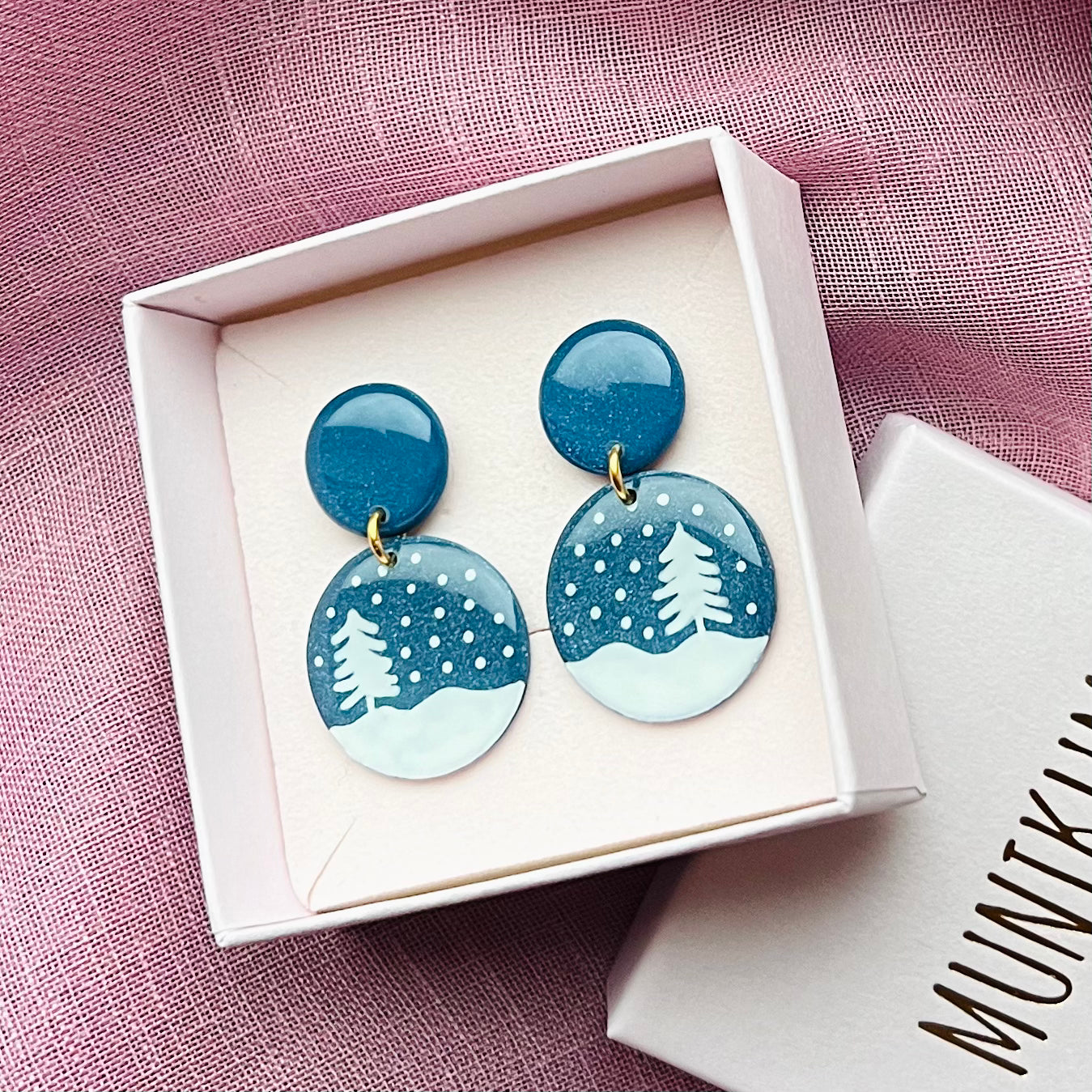 Blanke unika-ørestikkere med håndmalede detaljer på en mørkeblå baggrund med glimmer <3